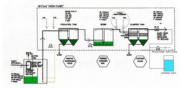 我公司針對(duì)新西蘭擠奶房沖洗水的特點(diǎn),結(jié)合集裝箱幾何尺寸及業(yè)主的管理水平,特設(shè)計(jì)三池兩風(fēng)機(jī)擠奶房沖洗污水自動(dòng)處理回用設(shè)備,它與其它流行設(shè)備有很大的區(qū)別,不但工藝先進(jìn),而且機(jī)電設(shè)備極少,目前它是適用于擠奶房沖洗水的處理及回用的最新型專用設(shè)備。